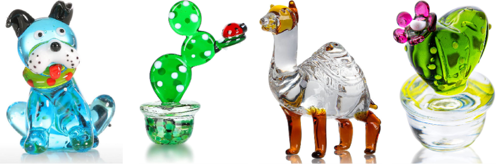 Hard Glass Figurines: it is made from glass rods and shaped with a blow torch. The glass is Borosilicate glass, the strongest and most durable glass. Hard Glass Figurines are all hand made in small size, but crystal and no lead content.